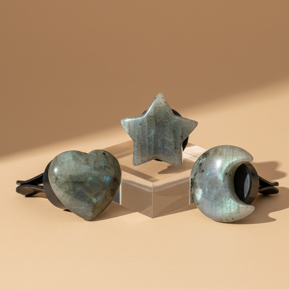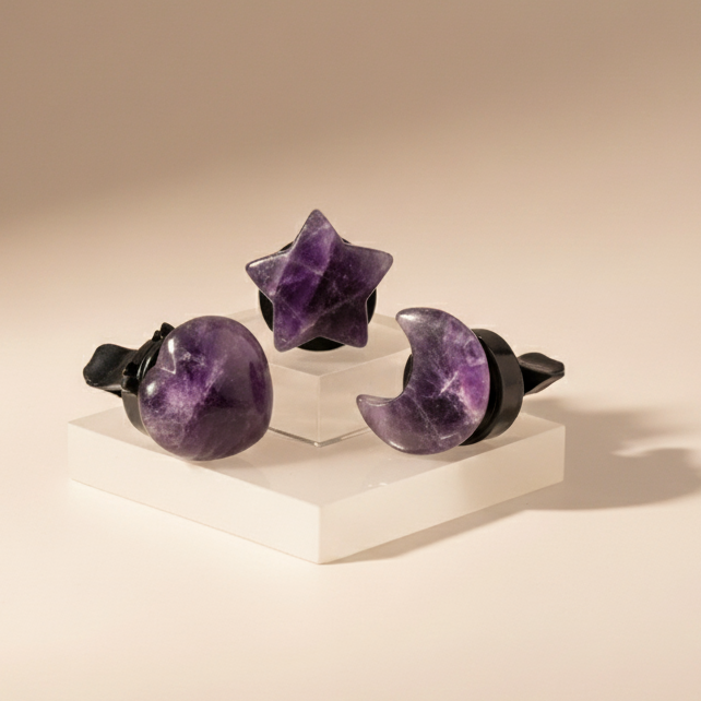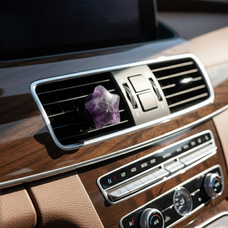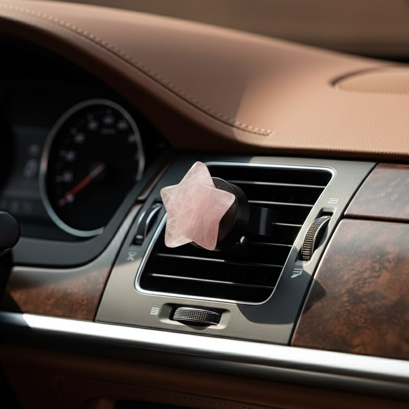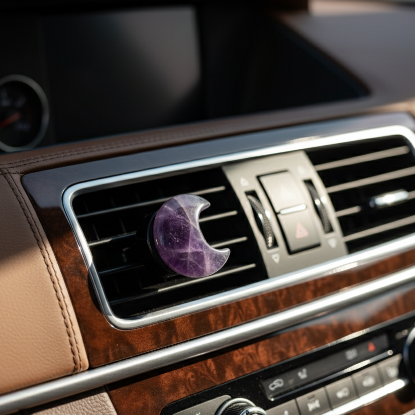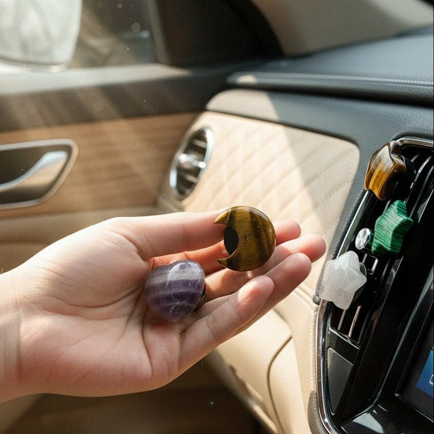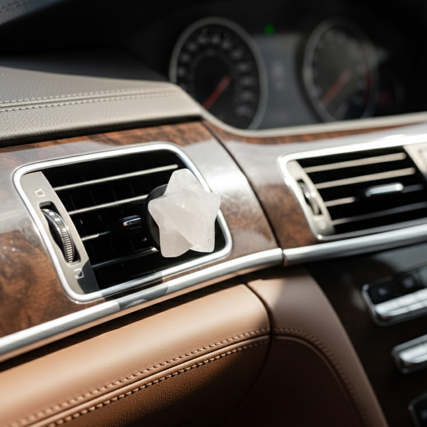 Elevate your drive with Moment Of Stone Crystal Car Diffuser Clips. Handcrafted from natural quartz crystals, these elegant clips combine aromatic diffusion with crystal energy. Choose from three symbolic shapes - star, heart, or moon - each designed to bring positive vibrations to your journey. The compact design (3cm crystal, 5cm total) clips easily onto air vents, transforming your car into a sanctuary of peace and style.