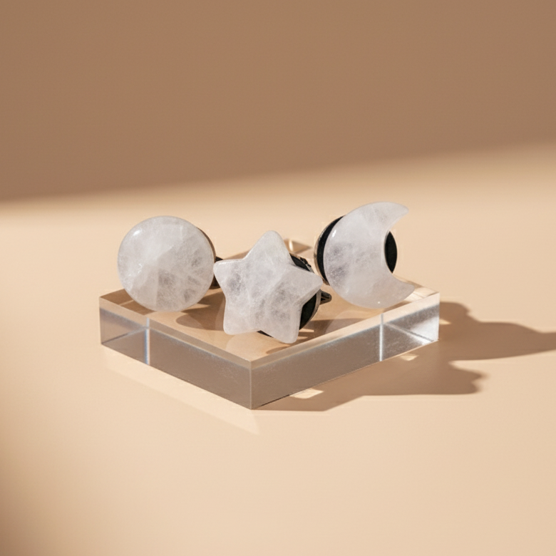 Genuine quartz crystals known for calming properties and positive energy enhancement