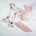 🌹 Rose Quartz Set – The stone of unconditional love. Gently massage your face to boost circulation and reveal a comforting glow, while opening your heart to self-acceptance.