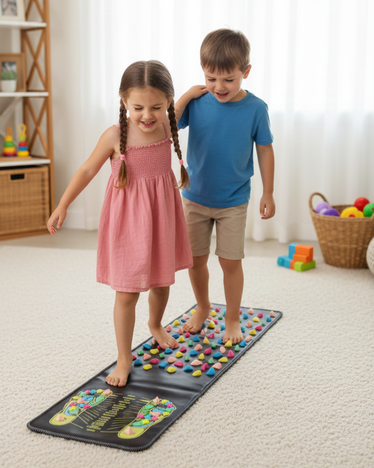 In the rhythm of modern life, find your moment to stand still. Our reflexology massage mat (175×35 cm) transforms ancient healing wisdom into a daily wellness practice. Inspired by riverbed walking—a tradition rooted in natural therapy—this mat recreates that grounding experience at home. Each carefully positioned natural stone targets key acupressure points on your feet, helping release tension, stimulate circulation, and restore your body's natural energy flow. More than a product, it's a pathway to holistic well-being.