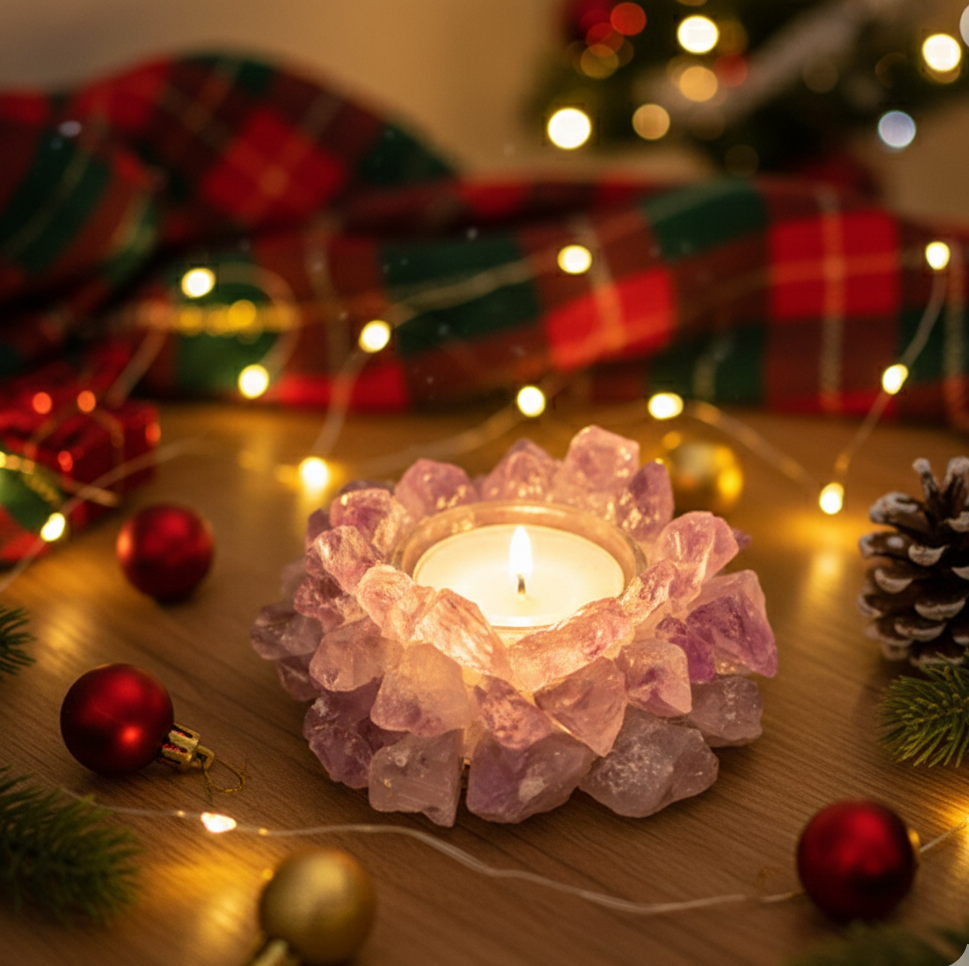 Create a harmonious and natural ambiance with our set of four raw crystal candle holders. Each piece is carefully selected from genuine crystals, bringing earthy elegance and tranquil energy to your space. Designed to hold tea lights or small candles (approx. 3cm tall x 7-9cm diameter), these unique holders beautifully enhance the warm glow and subtle fragrance of burning candles. Whether arranged as a centerpiece or placed throughout your home, this collection adds organic charm and serene atmosphere to any room decor.