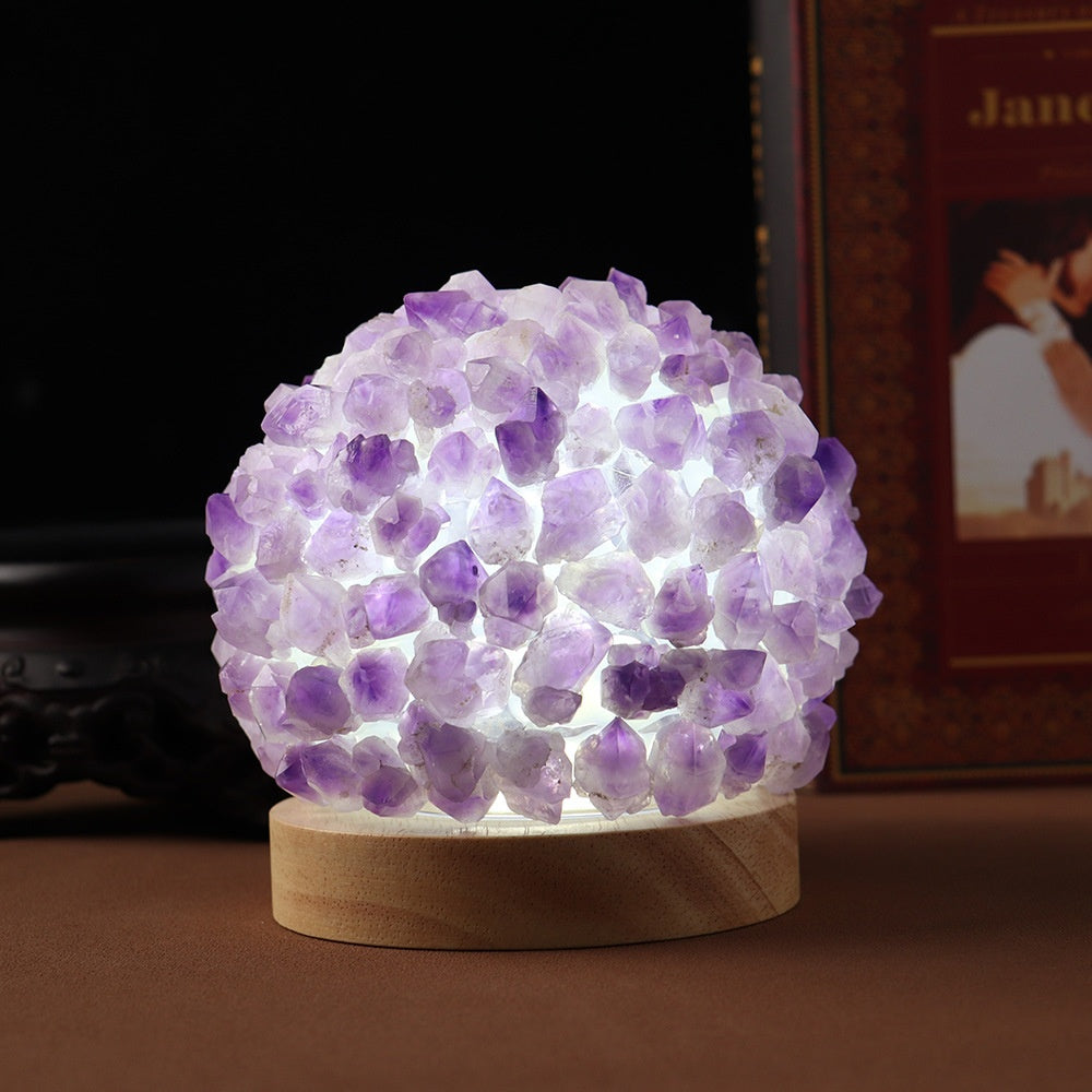 Each lamp is uniquely filled with real crushed crystals—choose from Celestite, Amethyst, or Rose Quartz—each carrying its own energy to support emotional balance, mindfulness, and a deeper connection to nature’s raw beauty.