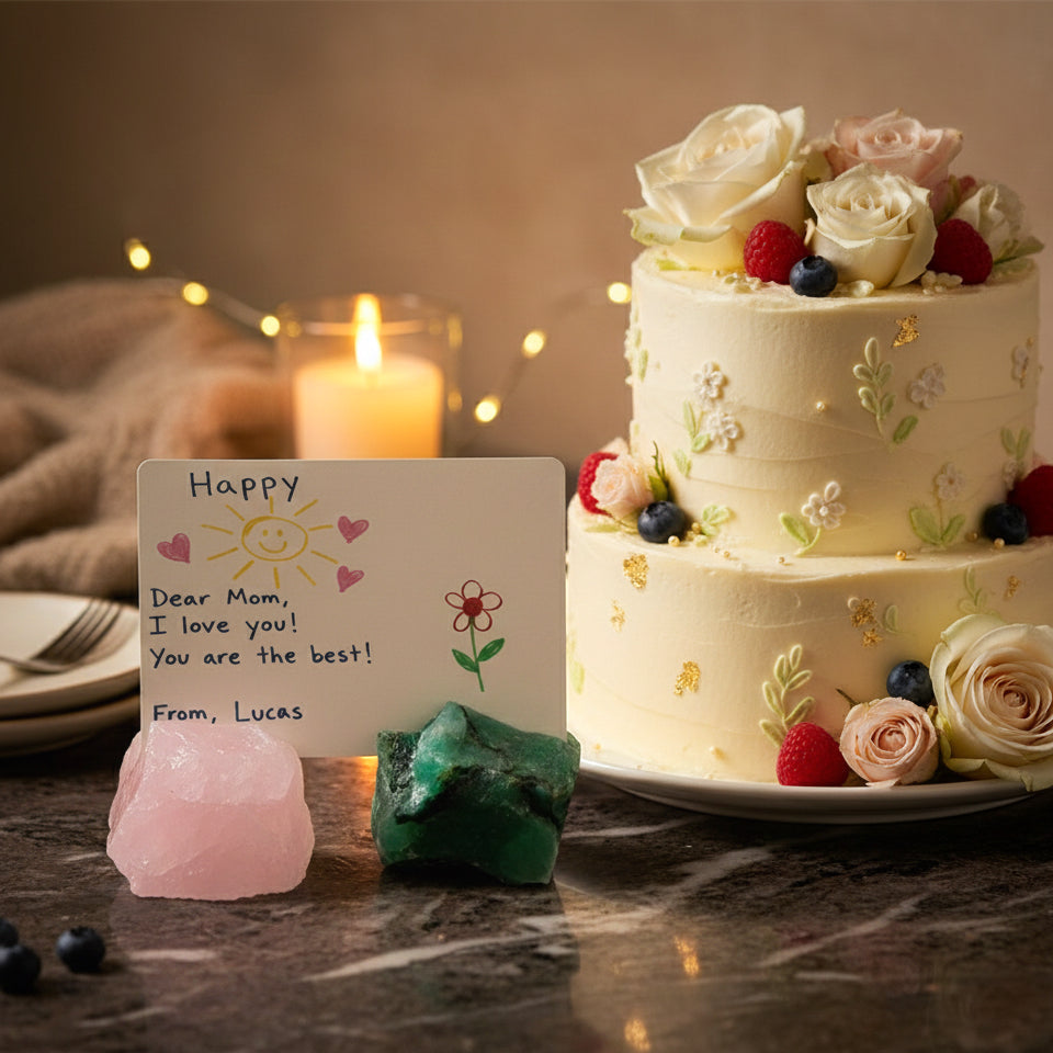 The integrated slot securely holds cards, notes, or photos, transforming simple reminders into moments of intentional pause and crystal connection.