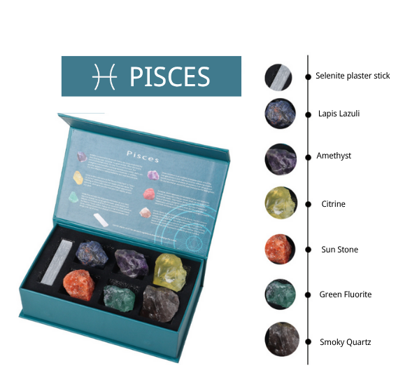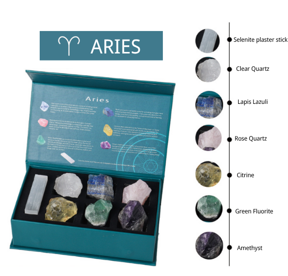 Each set is intuitively assembled to reflect the elemental energy and archetypal spirit of a specific sign—empowering, balancing, and inspiring. -
